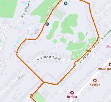 Description: Boucle rapide de 1,5 km sur route fermée. Encadrée pour la sécurité des enfants. Se termine par une montée de la rue des mésanges bleues, offrant une dernière ligne droite amusante.