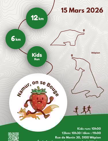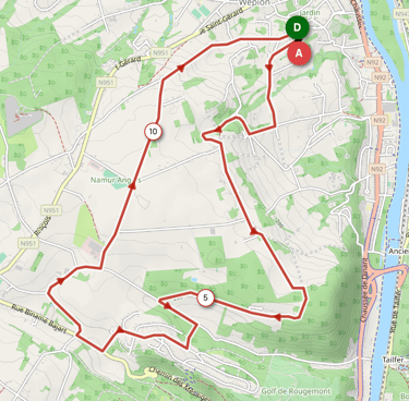 Une distance parfaite pour se lancer ou se faire plaisir. Parcours vallonné avec une boucle exclusive dans Wépion et un passage boisé de 400 m.