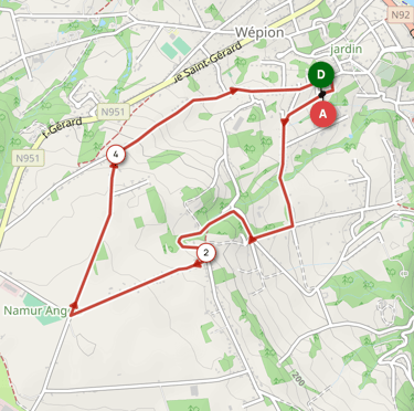 Un parcours vallonné à la découverte de Wépion, mêlant routes tranquilles et beaux chemins boisés. Idéal pour se challenger tout en profitant du paysage.